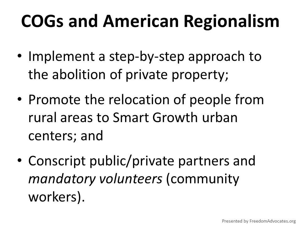Regional government organizations like the Association of Bay Area Governments (ABAG) are usurping sovereignty and control from our locally elected city, town and county officials. ABAG regulators are unelected and unaccountable to the citizens, and are implementing policies created by international organizations such as the United Nations and ICLEI (Local Governments for Sustainability).